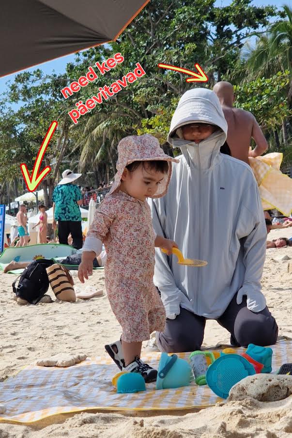 Kohalikud rannas samal ajal varbaotsast kõrvuni kinni pakitud.