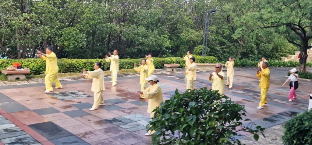 Päev algab varakult, enne päikest. Parkides tantsitakse, mängitakse, lauldakse karaoket, tehakse tai chi’d, seda aeglast kätega õhus vehkimise kunsti. Mehed mängivad kaarte või mingeid lauamänge, mille reegleid ei tea keegi peale nende endi. Nagu suured lapsed, kes on saanud liiga vara ärgata ja kellel on nüüd vaba voli.