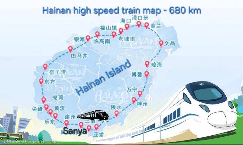 Hainani ringraudtee – 680km., on kõige selle miniatuurne mudel, kus rong teeb saarele ringi peale vähem kui viie tunniga.