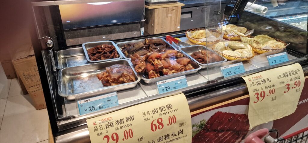 Hiinlastele meeldivad seakamarad, seajalad ja igasugused erineva kooslused nendest. Kõik see, mis meil Eestis kunagi talupojaköögis au sees oli, on siin igapäevane lettidel laiutav standard.