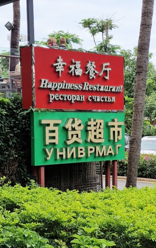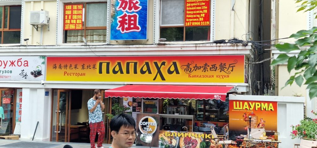 Kogu rannaäärne linnaosa on täis venekeelseid silte kõrvuti hiina omadega.