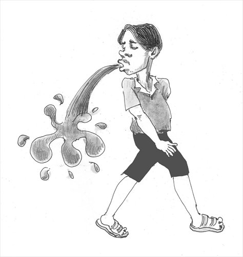 Kõigepealt tõmmatakse lurinal ja demonstratiivselt kogu võimalik tatt kuskilt ninaneelust kurku. Heli on kõrge, märg ja ambitsioonikas, nagu keegi prooviks seestpoolt akvaariumi tühjaks lasta. Vahel mitu korda järjest, sest ilmselt pole veel ideaalne konsistents käes. Kui vajalik materjal on suus olemas, järgneb lühike paus ja siis sülitatakse see välja. Kiirelt. Täpselt. Ilma igasuguse draamata.