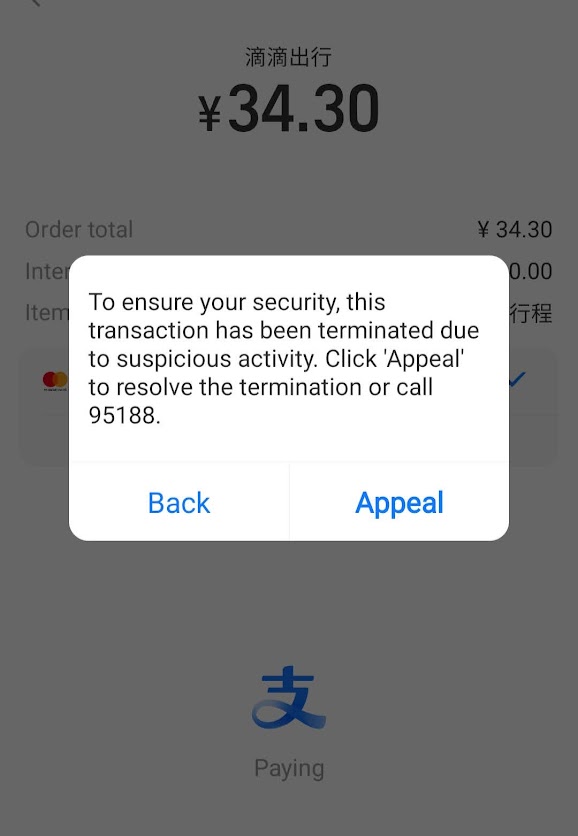 Ja siis see juhtus – just sel hetkel otsustas AliPay alustada minu isiku tuvastamist, millega tõmmati kriips peale kõigile maksetevõimalustele.
