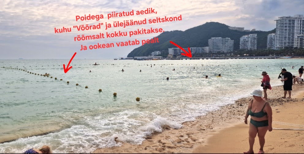 Lennujaamast väljudes tervitab sind kivist stend parteilise üleskutsega astuda kommunistliku partei ridadesse. Punane värv pluss tuttav sümboolika. Tunne, et ajalugu liigub eri kohtades erineva kiirusega. Kõnnin kohvrit lükates edasi arusaamaga, Sanya ei ole ainult rand. See on Hiina. Täies komplektis.